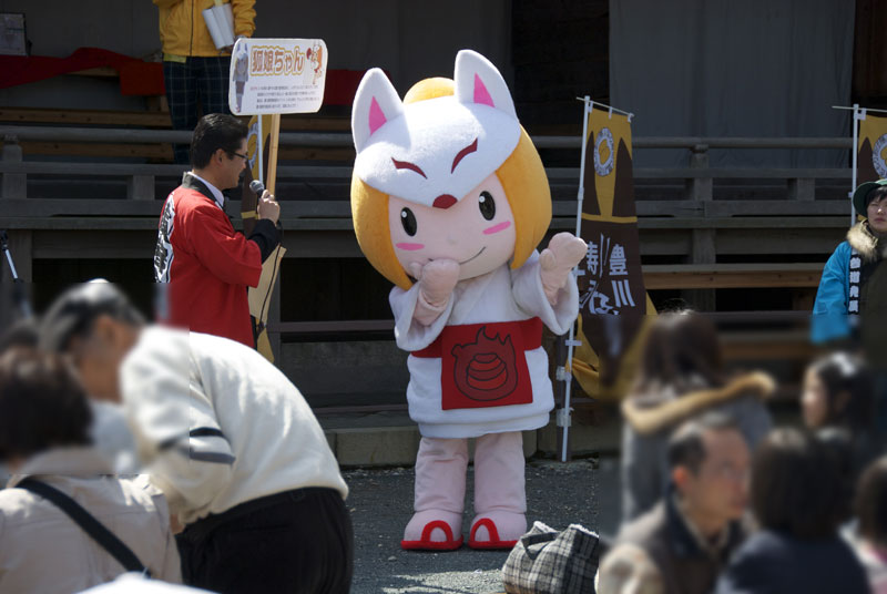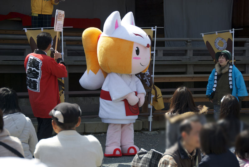 豊川稲荷界隈商店街統一マスコットキャラクター「狐娘ちゃん」とJR東海さわやかウォーキング東海鉄事直轄マスコットキャラクター「あゆむ君」を撮ってきました。