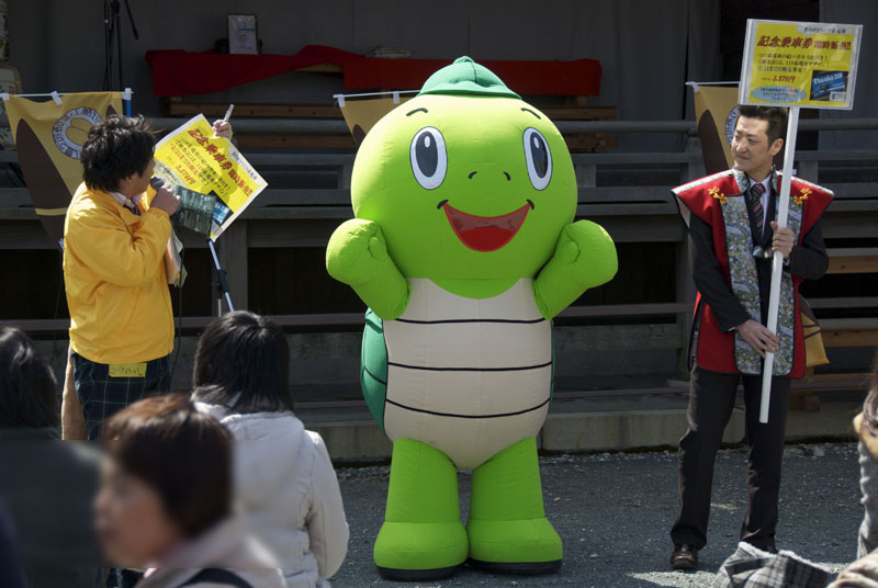 沿線に行く前に、豊川稲荷で記念硬券乗車券を発売しているというので冷やかしに行ったのですが、さわやかウォーキングに名鉄ハイキングも同時開催で、境内では稲荷寿司食べ比べや地元ゆるキャラ大集合などのイベントも行われており、大にぎわいでした。