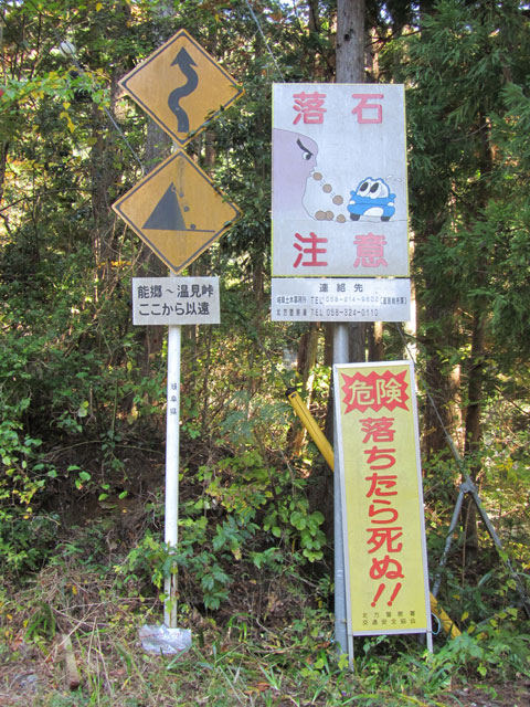 「危険!落ちたら死ぬ」(画像)や道路が川になっている(洗い越し)ことで有名な国道157号線に並ぶ酷道です。