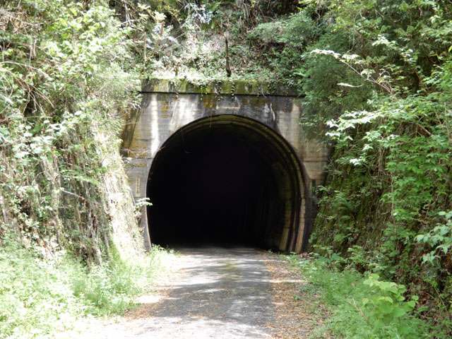 歩き始めてから約1時間10分で二股トンネル前に到着。(画像)